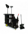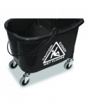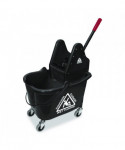 Premier Downpress Mop Bucket & Wringer has a 32 to 35 quart bucket and is made for use with up to 32 oz mops. The downpress wringer increases leverage and reduces fatigue.