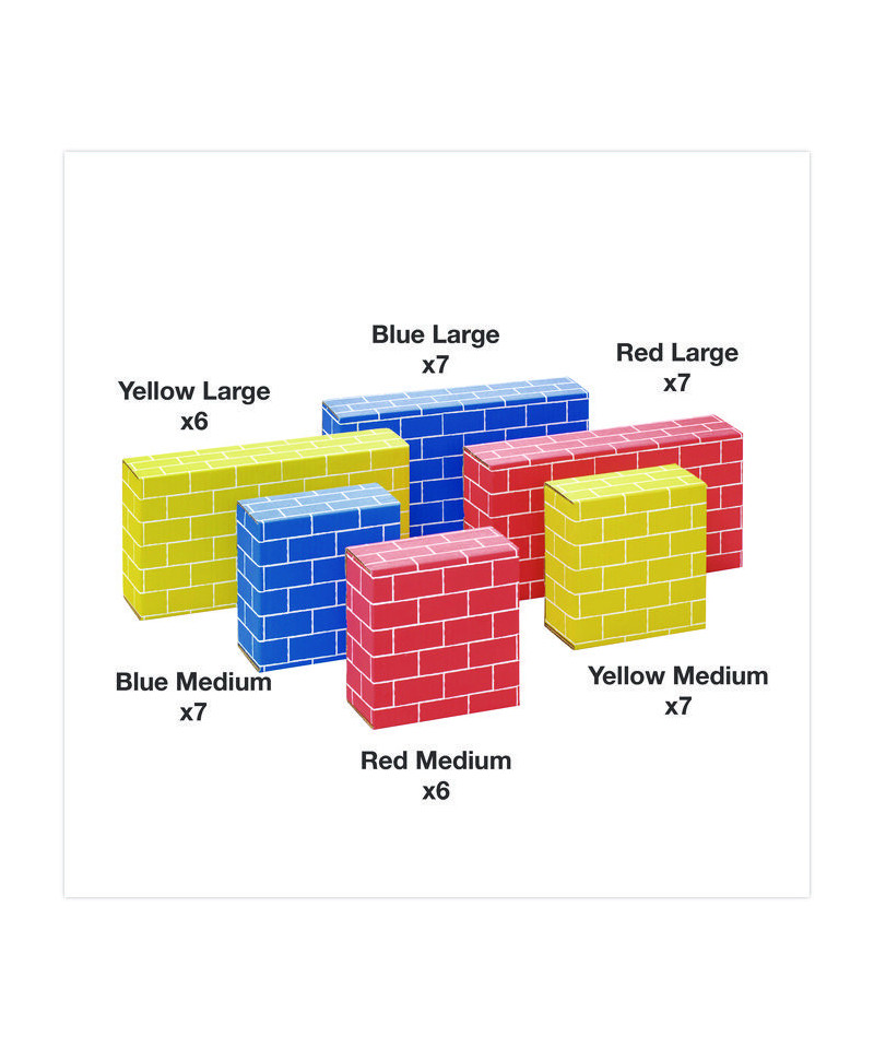 Young creative builders ages three years and up will love playing with these durable large cardboard building blocks. Each set features large and medium building blocks in three different colors with a fun brick design for constructive and imaginative play. Large blocks measure 12" x 6" x 3" and medium blocks measure 6" x 6" x 3". Building blocks for toddlers who can enjoy playing with others to build tall towers and have fun knocking them down. The blocks are easy to assemble but require adult assistance. Blocks are made from strong corrugated board that can hold up to 150 lbs.