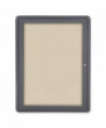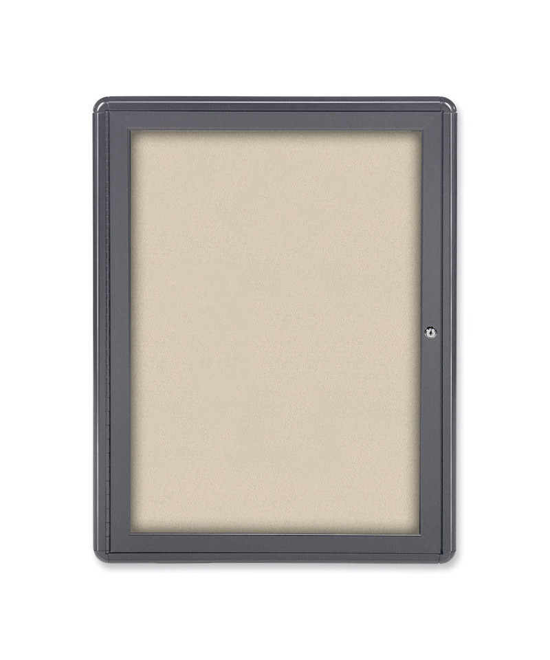 Ghent's Ovation Enclosed Bulletin Board is a sleek, modern take on the traditional message center. The fabric bulletin surface is paired with a powder-coat gray matte frame that suits any environment. The radius frame and soft edges act as a mid-century modern accent, moving away from the more common industrial frame. This fabric bulletin board hides pin holes while holding announcements and papers tight against the board. The fabric surface is colorfast, so you won't have to worry about the surface fading or wearing down over time. Shatter-resistant acrylic panels make the enclosed board safe, never having to worry about shattered glass or cracking. Full-length piano hinges give the doors additional strength so you can change information on the bulletin surface as often as you need without worrying the hinge will weaken. Each locking board comes with two keys and includes built-in hanging hardware, meaning you can keep your announcements and bulletins secure in public areas. Recommended for indoor use only.