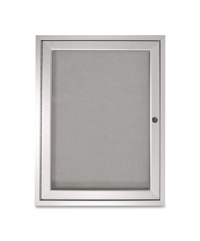 1 Door Enclosed Vinyl Bulletin Board with Satin Frame, 18" x 24", Silver Surface, Satin Aluminum Frame