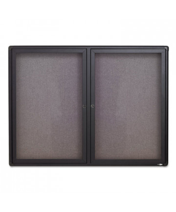 Ghent's Enclosed Vinyl Bulletin Board is the perfect way to display messages, pictures, and important information securely. The message center is made with a vinyl tack surface that hides pin holes and holds up under repeated tacking, providing years of reliable service. When used outside, this vinyl board will not break down or mold, unlike cork enclosed boards. You do not have to worry about damage from weather or humidity as long as you hang the board under an awning or overhang. This 1-door enclosed bulletin board is protected using shatter-proof acrylic panels, full-length door hinges, and locks that are flush with the frame. You can install the board in high-traffic, public areas without worrying about damage or tampering. Hidden corner brackets allow the message center to sit flush against the wall without any visible hardware which adds protection from vandalism. The colored vinyl surface is paired with a satin aluminum frame and includes two keys. Perfect for indoor and outdoor use.