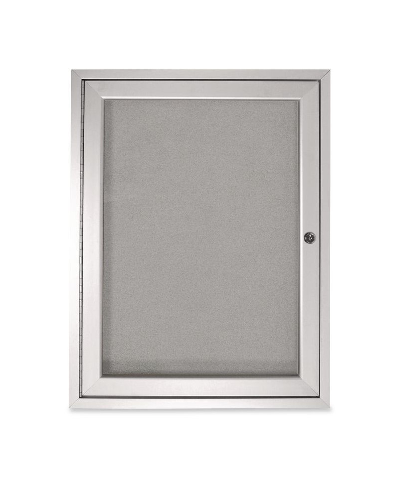 1 Door Enclosed Vinyl Bulletin Board with Satin Frame, 30" x 36", Silver Surface, Satin Aluminum Frame