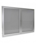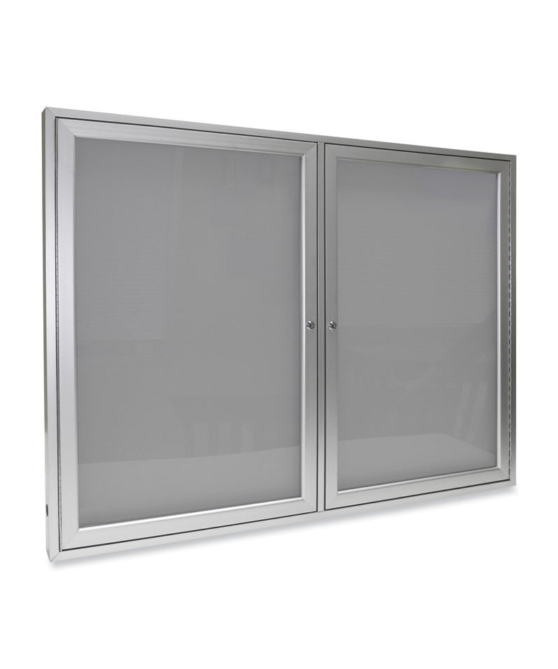 2 Door Enclosed Vinyl Bulletin Board with Satin Frame, 60" x 48", Silver Surface, Satin Aluminum Frame