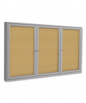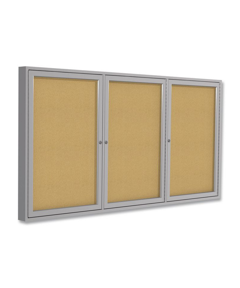 2 Door Enclosed Natural Cork Bulletin Board with Satin Frame, 72" x 36", Tan Surface, Satin Aluminum Frame