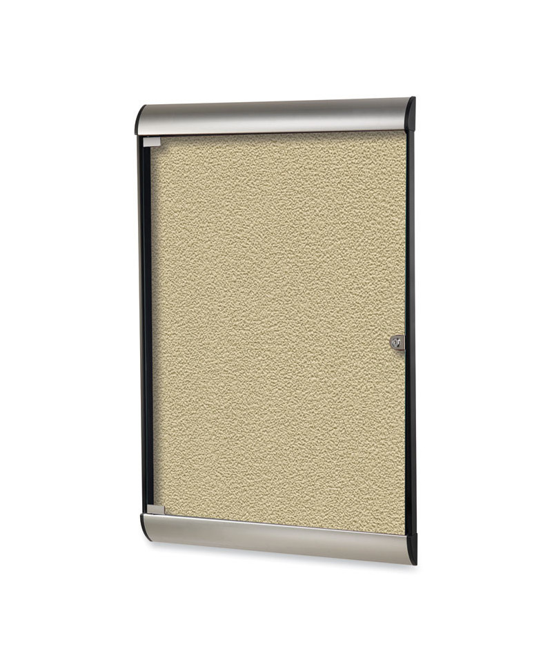 Ghent's Silhouette Enclosed Bulletin Board offers a protected surface for you to pin, tack, or staple important messages or announcements. The bulletin surface holds up to nine pieces of letter sized paper so that you can fit more information in one spot. With a frameless glass door, all the postings will be visible, allowing you to take advantage of the full vinyl tack surface. The lockable tempered glass door provides additional strength and protection, giving you the option to place the enclosed bulletin board in public areas without worrying about postings being removed or damaged. Ghent's versatile board has no specified top or bottom, meaning Silhouette can be hung with the lock on the left or right, providing flexibility when mounting. Minimal framing on the sides allows you to mount multiple boards side by side with little disruption to the viewing area. A rounded profile on the top and bottom of the frame, paired with sleek frame options, makes Silhouette an upscale contemporary tool to display information in a business, school or office. The modern aesthetic is perfect for design-sensitive executives and customer accessible lobbies, entranceways, hallways and common areas. Recommended for indoor use only.