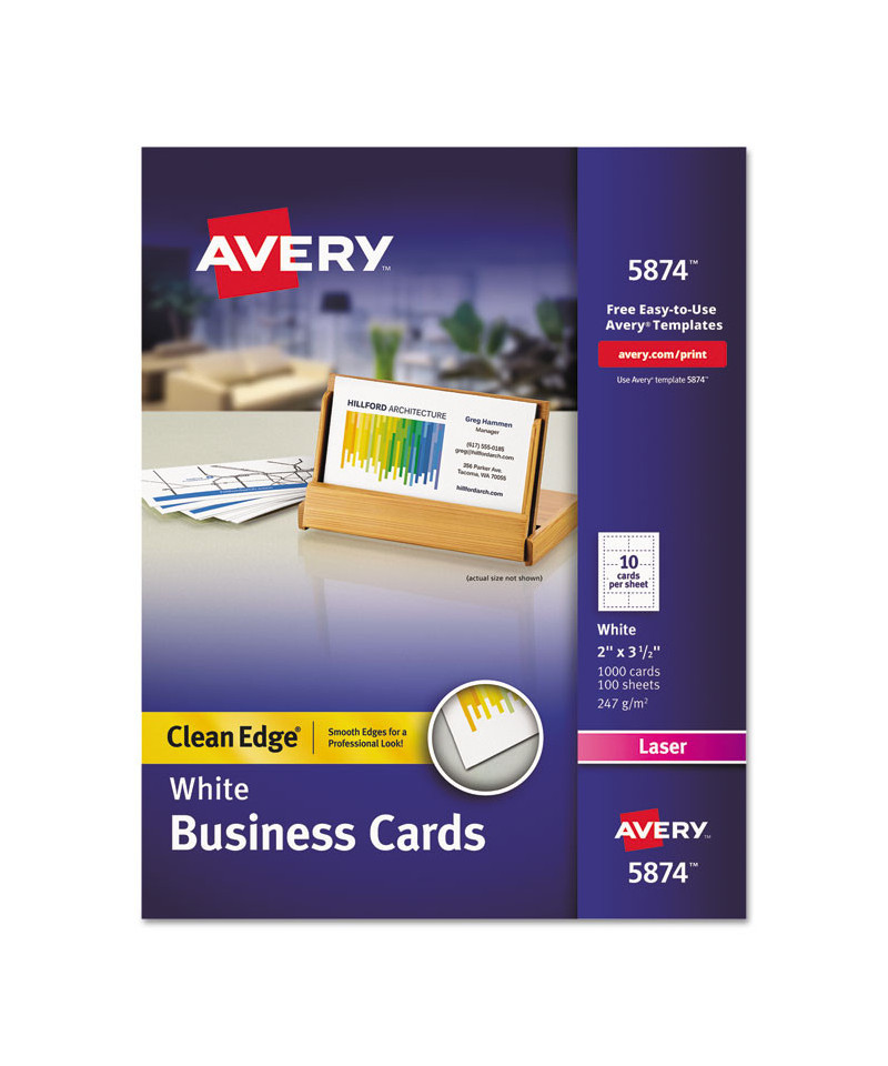 Design and print professional-looking business cards. Proprietary Clean Edge® technology ensures that cards snap apart with smooth edges. Print on both sides. Easy to customize with free designs and templates from Avery Design & Print. 8.5" x 11" sheets for laser or inkjet printers.