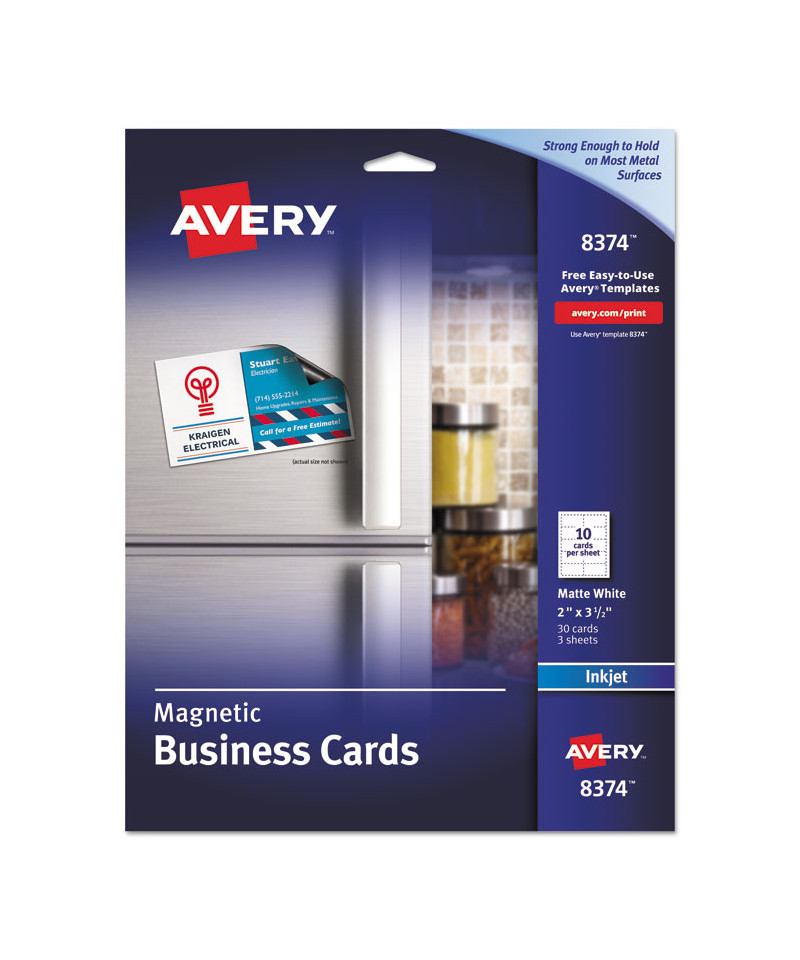 Want a business card with a little positive attraction? These Magnetic Business Cards are specially coated for sharp text and vivid colors and are precut for easy separation. They easily stick to most metal surfaces to keep them displayed and on people's minds. And with free templates from Avery Design & Print, you can customize the cards with outstanding text and graphics and then print them on your inkjet printer in minutes. Finally, a business card that really magnetizes. Convenient do-it-yourself cards mean that you can make changes and print new cards at a moment's notice.