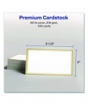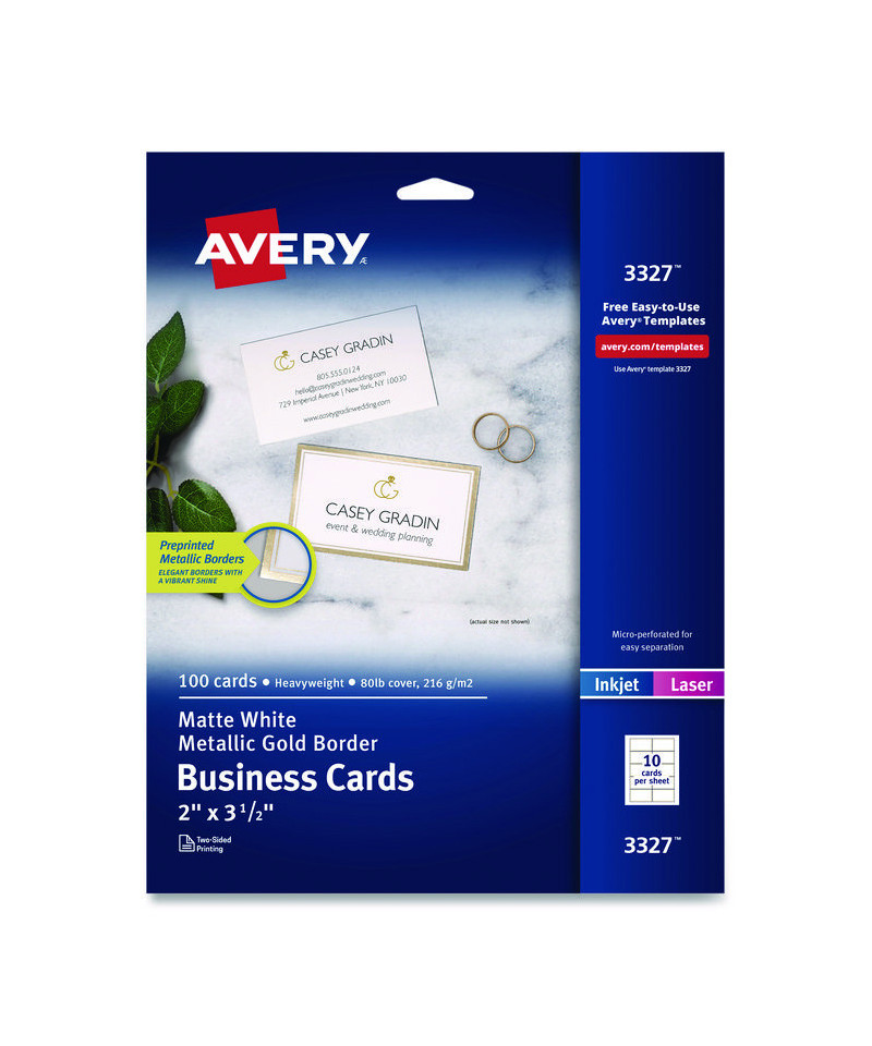 Featuring a stunningly reflective pre-printed gold border on one side, the gilded edges add a brilliant glow to business cards, appointment cards, reward cards and more. Both sides of the sheet are printable so that you can create beautiful double-sided designs. Designed to leave behind a smooth border, a series of precise cuts are used around the edge of each card to separate easily. These cards are also made with 80 lb cover/216 gsm cardstock that is compatible with both laser printers and inkjet printers. Whether you're starting with your own design or looking for something to start with, the templates and tools on the Avery® website make it easy to design and print any project. Our intuitive design software helps you line up your design within the metallic card borders so that your text and artwork fit perfectly. Pair these cards with other Avery® labels, cards, tags and tent cards featuring metallic gold borders to complete the look. For best results, use the paper setting for cards and feed each sheet one at a time through your laser or inkjet printer.