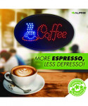 Illuminate your coffee shop with the brilliance of the Alpine Industries LED Coffee sign, a beacon of success that surpasses competitors and propels your business towards newfound visibility and prosperity. Say farewell to dimly lit cafes and hello to a luminous future with our cutting-edge LED lights, meticulously crafted to deliver unparalleled brightness, safety and energy efficiency. Compared to outdated neon signs, our LEDs not only light up your establishment with clarity but also contribute to a more sustainable operation. But the advantages don't end there. Our LED Coffee Sign is not just a symbol of modernity but also a pinnacle of user-friendliness. Equipped with a convenient plug-in cord, installation is a breeze-simply plug it in and control it effortlessly with the switch conveniently located on the cord itself. No need for complex instructions or technical expertise. Just plug, switch, and watch as your coffee shop comes alive with the inviting glow of our bright LED lights, captivating passersby and beckoning them inside. It's more than just a sign; it's an invitation. An invitation for new customers to indulge in the warmth and aroma of your coffee, drawn in by the irresistible allure of your illuminated storefront. An invitation for regular patrons to return time and time again, enchanted by the ambiance and hospitality that your establishment offers. So give your coffee business the boost it deserves with a dazzling new LED Coffee sign that not only attracts attention but also fosters loyalty, ensuring that your cafe remains a destination of choice for coffee lovers far and wide.