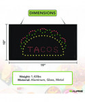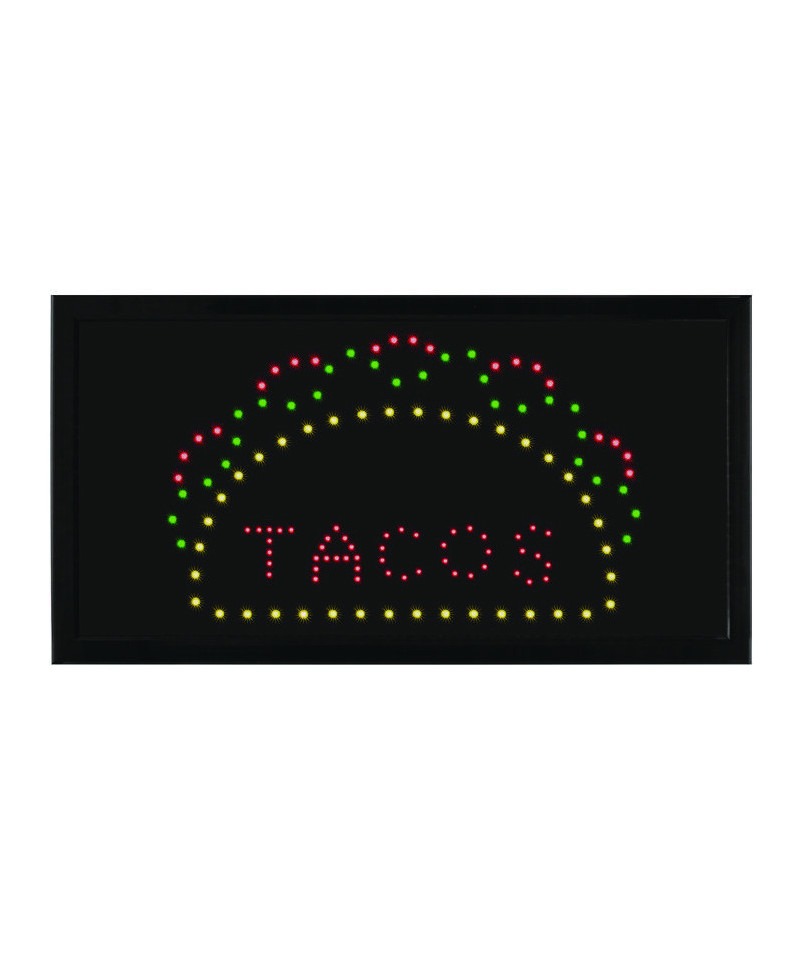 Enter a new era of business brilliance with Alpine Industries LED Signs, the ultimate solution to outshine your competitors and pave the way for unprecedented visibility and success. Say farewell to dimly lit surroundings and embrace a luminous future powered by our cutting-edge LED lights, meticulously engineered to deliver unparalleled brightness, safety, and energy efficiency. Compared to outdated neon signs, our LEDs not only illuminate your establishment with clarity but also contribute to a more sustainable and eco-friendly operation, aligning seamlessly with modern values and expectations. But the benefits of our LED Signs don't end there. Picture this: a vibrant Taco sign adorning your storefront, beckoning customers with its irresistible glow. This is not just any sign-it's a beacon of opportunity, a promise of savory delights and unforgettable experiences. Crafted to captivate attention and inspire curiosity, our Taco sign is designed to give your business the boost it deserves. Its bright and eye-catching display is guaranteed to attract new customers and keep them coming back for more. But wait, there's more. Hanging your sign has never been easier thanks to the included hanging chain, allowing you to effortlessly display it at your place of business for maximum impact. What's more, our LED Taco sign is UL Certified and plugs into any outlet, ensuring hassle-free installation and peace of mind. With the on and off switch conveniently located on the side of the frame, operation is simple and intuitive. Plus, with two display modes-flickering and animated-controlled by a switch on the power cord, you have the flexibility to customize the ambiance to suit your preferences. It's more than just a sign; it's a statement. An invitation for customers to indulge in the flavors of your tacos, drawn in by the tantalizing display of your illuminated storefront. So why wait? Elevate your business to new heights with Alpine Industries LED Signs-a symbol of innovation, quality, and success that promises to set your establishment apart and ensure its flourishing for years to come.