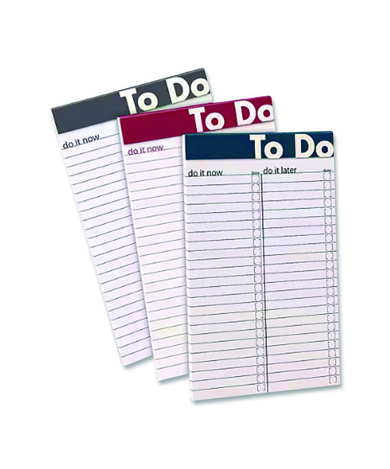 Plan out and track your daily tasks. Divided design helps you prioritize your workload into "do it now" and "do it later" columns, so that you can get everything done in the most efficient way possible. Handy checklist brackets make it easy to check off items as they're completed, while looking far more organized and professional than an ordinary pen or marker strike-through on your completed tasks. Colorful header provides a burst of motivation each day. Convenient, compact size fits neatly into your briefcase, laptop/work bag, breast pocket or purse.