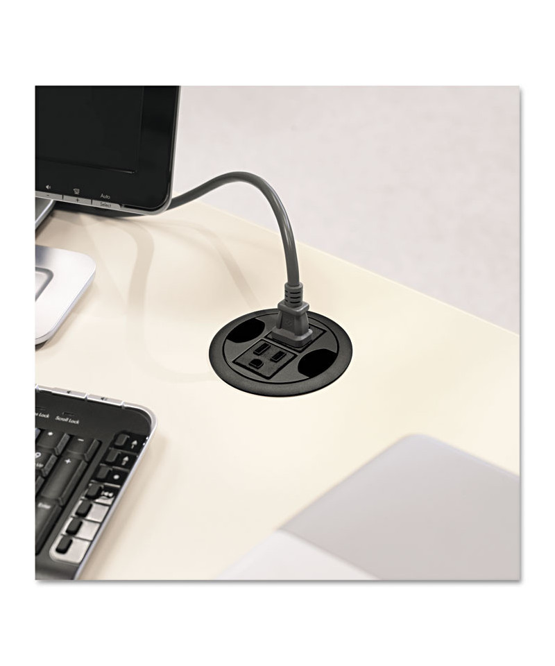 Power hub puts power access directly at your worksurface level. Provides two grounded AC outlets. Generous six-foot cord with three-prong plug provides a safe, secure connection. Fits three-inch grommet holes in most HON furniture lines.