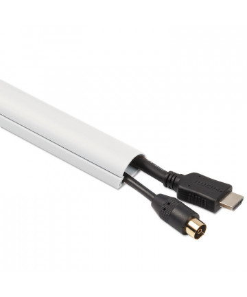 Protect cables in high-traffic areas. Strong, flexible PVC casing organizes and hides unsightly cables and cords across open floor-space areas. Rounded face surface helps prevent tripping and snagging. Features a pre-split cable channel.