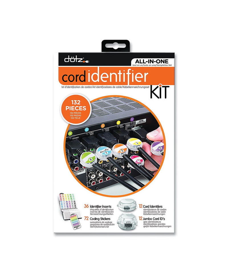 Never plug or unplug the wrong cord or cable again. Home Entertainment Cord Identifer Kit makes the most complicated home theater, gaming or tv/phone/internet installations as easy as matching a shirt with pants. Match color, number and text on both ends of the cord to easily see your electronic device connections, visible even in low-lit areas. Perfect for receiver, monitor, tv, Blu-Ray player, camcorder, cable box, stereo/speaker system, gaming, internet and coaxial cable wiring behind walls, on separate floors or in different rooms. Choose one of two cord identifer sizes to fit around standard cord and cable diameters; the jumbo identifier is perfect for HDMI cables. Simply punch out one of the Inserts (12 colored and numbered combinations to choose from), write the device name or location on it and snap around the cord end. Repeat for the other cord end. Apply a matching sticker to the device's input or output and plug in the cord. Record with a corresponding sticker on the included device chart to have a convenient reference when changing out a device or adding a new device.