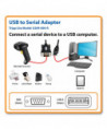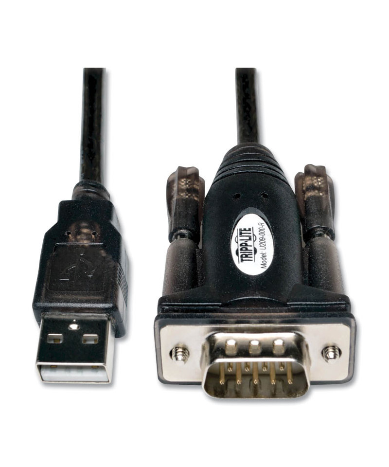 The U209-000-R USB-to-Serial Adapter Cable allows you to connect a 9-pin RS-232 serial device to a computer or laptop with a USB Type-A port. It works with modems, digital cameras, PDAs, ISDN terminals and other devices with a serial port. The U209-000-R supports data transfer speeds up to 230 Kbps—twice as fast as a built-in serial port. No external power is required, and the compact 5-foot cable tucks away conveniently in your backpack or laptop bag for easy traveling. Doubled-shielded design with gold-plated contacts, tinned copper braid and aluminum Mylar foil shield eliminates crosstalk and reduces EMI/RFI interference. Compatible with Linux® Red Hat® 7.3, 8.0 and 9.0; Mac® OS X 10.6-10.10; Windows® 2000, XP, Server 2003, Server 2008, Vista™, 7, 8, 8.1, Server 2012, 10. Also works with Android® tablets and smartphones with the addition of a USB Host Mode (OTG) cable.