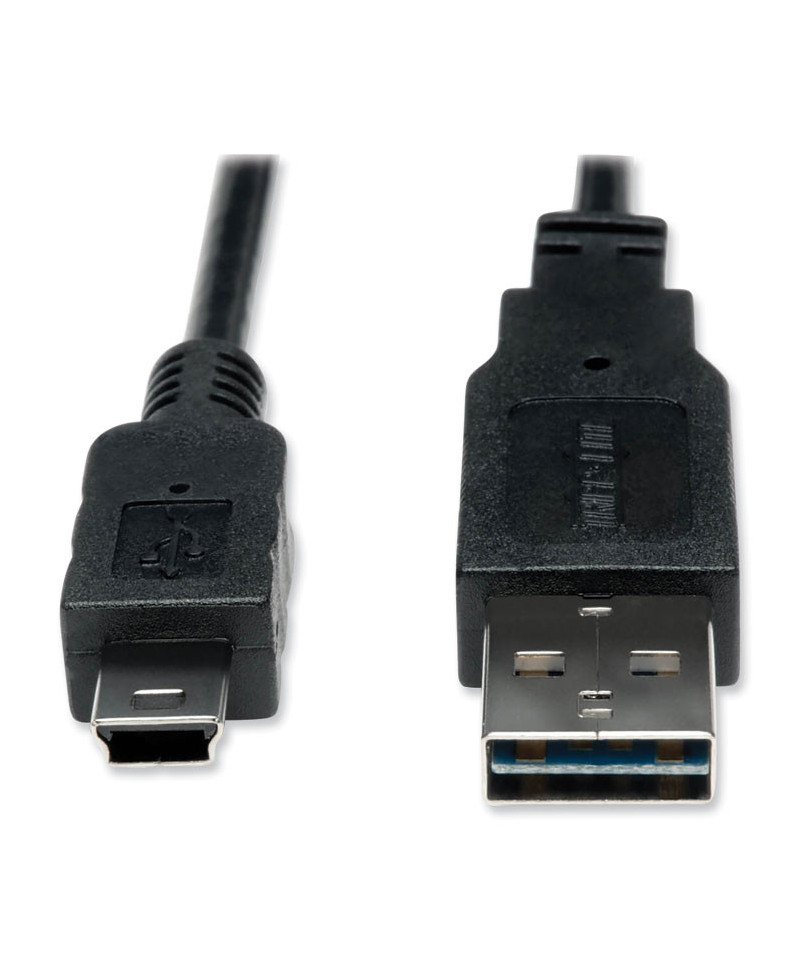 Universal Reversible USB 2.0 Cable, Reversible A to 5-Pin Mini B (M/M), 6 ft, Black