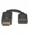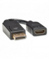 Save money by connecting your DisplayPort laptop to an existing HDMI display. This DisplayPort to HDMI cable (M/F) allows you to play stereo audio and high-definition video from your DisplayPort computer or laptop on an HDMI television, monitor or projector. You can continue using your existing HDMI display and HDMI cable without the time, effort or expense of replacing it with a new DisplayPort monitor. It is an easy, inexpensive way to play video in classrooms, conference rooms, lecture halls, trade shows and other on-the-road presentations. Transmits outstanding 1080p video for high-definition presentations. This DisplayPort to HDMI converter adapter supports computer video resolutions up to 1920 x 1080 (at 60 Hz) and HDTV resolutions up to 1080p with 36-bit Deep Color. Watching videos and playing games on a large-screen HDMI monitor is enhanced by the cable's support of 7.1-channel surround sound. Passive adapters require DisplayPort++ for HDMI pass through. Because it is a passive adapter, this adapter cable requires that the connected source device have a DisplayPort++ (DP++) dual-mode port, which allows HDMI signals to pass through. Check your DisplayPort source's documentation for compatibility. Ready to use right out of the package. Ideal for displaying video on a large monitor or digital sign, the cable is perfectly sized for carrying in your briefcase or laptop bag for convenient use anywhere. Just connect the male DP end to your computer's DisplayPort and the female HDMI end to an HDMI cable to begin sharing HD audio/video signals. The plug-and-play adapter requires no software, drivers or external power.
