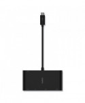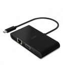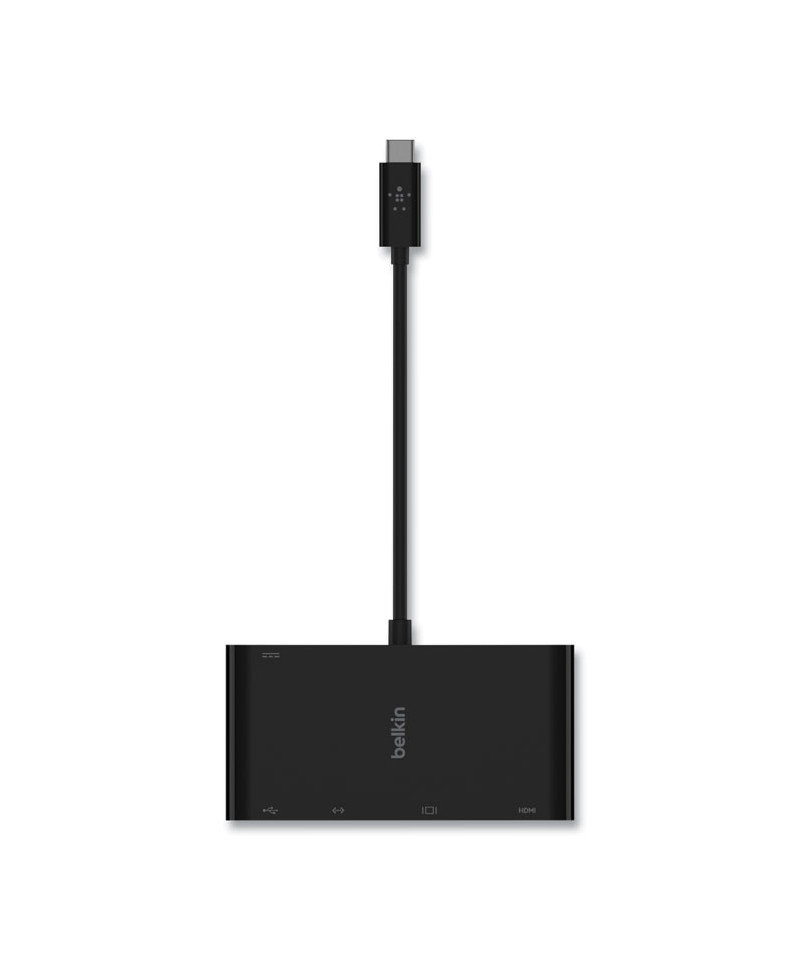 Keep watching and stay charged with a multimedia adapter that enables up to 100W of pass-through power. The five-port adapter supports Gigabit Ethernet, USB-A 3.0, VGA, 4K HDMI, and data transfer through USB-C®, making it the perfect tool in meetings, auditoriums, classrooms, or on the go. This simple plug-and-play technology is compatible with Mac and Windows laptops and USB-C devices.