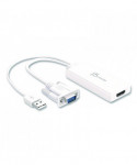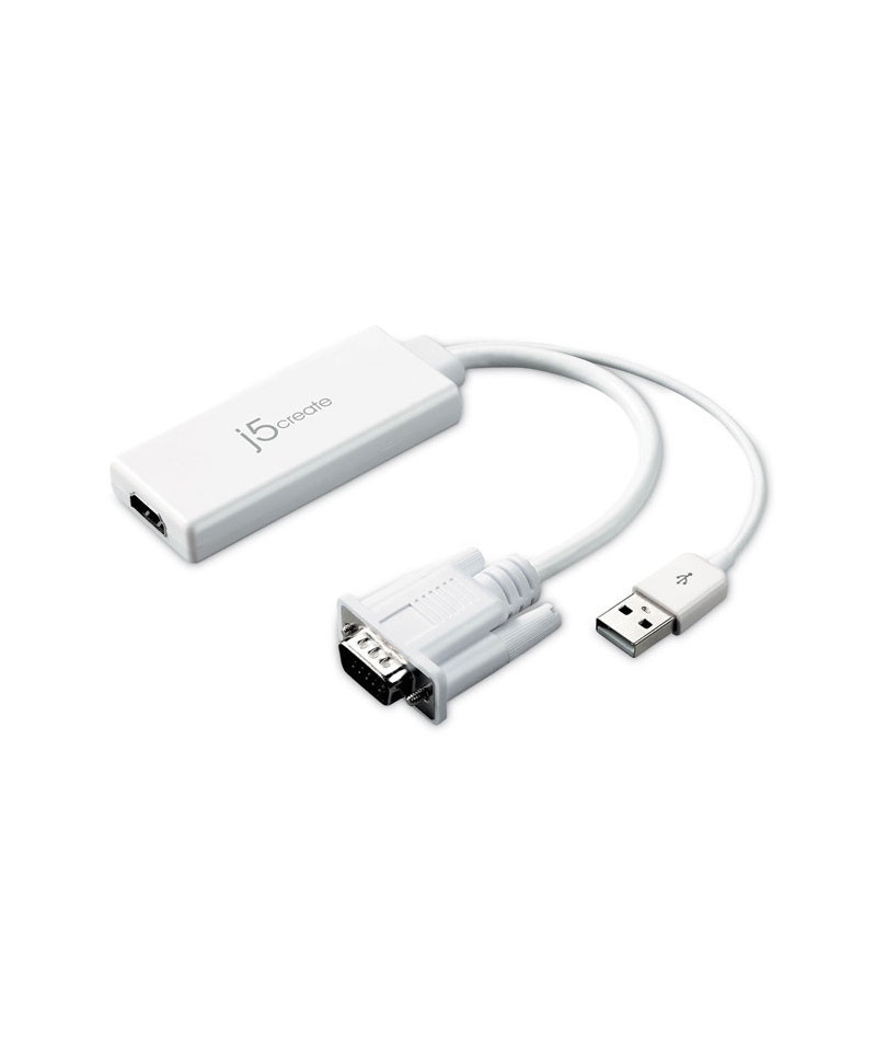 The JDA214 VGA to HDMI Video adapter allows you to connect the VGA input from your laptop or desktop to the HDMI output of a monitor or projector by converting the VGA video signal from the input device into a HDMI output and with a built-in USB power cable the device is powered using the USB port on your computer. The adapter supports resolutions including high definition 1080p, up to 1920 x 1200. The Adapter can also increase your productivity by extending your computer's desktop onto a secondary monitor, doubling available workspace. This adapter has a high quality, compact design for long term durability and a minimal footprint, and with its plug-and-play technology there is no need to download any drivers.