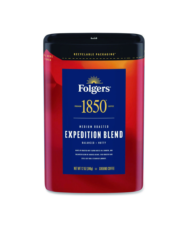 A smooth and steadfast journey starts with Folgers 1850 Expedition Blend coffee. Every sip of this premium medium roast coffee brings you hints of roasted nut flavor notes in a bold, yet balanced blend of fire-roasted, steel-cut Arabica beans. No matter how you brew it, you're in for an exceptional coffee experience backed by time-honored roasting and grinding techniques. But the coffee itself isn't the only thing inspired by James A. Folger's innovative spirit. Our paper-based package represents just one of the ways the Folgers brand is prioritizing sustainability. It's designed for paper recycling, with an airtight seal that keeps coffee fresh. So, pick up a canister. The perfect cup of coffee is calling your name.