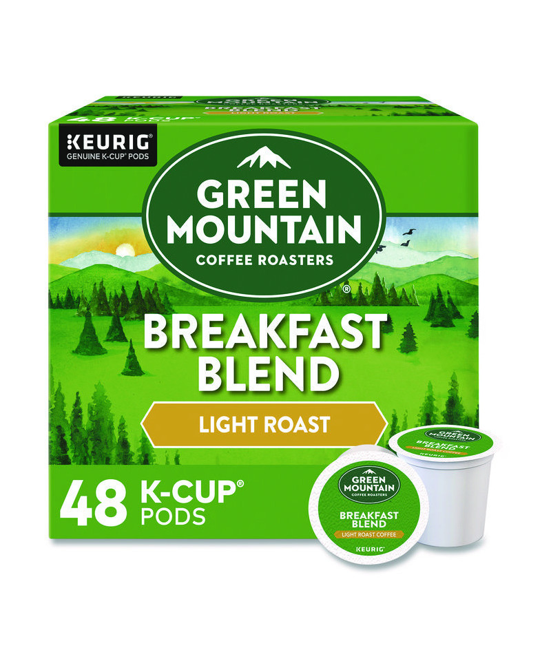 Breakfast Blend is our classic New England breakfast cup. It offers a crisp Central American coffee matched with the depth of an Indonesian bean to create a bright, wakeful blend. The mountains are a special place. It's where Green Mountain Coffee Roasters was born. It's where we developed our adventurous spirit and commitment to improving the lands through sustainably sourced coffee. We're driven to bring the world a richer, better cup of coffee. Be bold. Be alive. Grab a cup and get out there. The Green Mountain Coffee Roasters Breakfast Blend is as eye-opening and delightful as the dawn itself. Clean and bright, with balanced sweetness, nutty flavor, and a silky mouthfeel. Made with 100% Arabica coffee. These single-serve K-Cup pods are compatible with all Keurig K-Cup Pod Single-Serve Coffee Makers. Each K-Cup pod is filled with the freshest ground coffee and brews a perfect, great tasting cup of coffee, every time. What does being 100% responsibly sourced coffee mean? Responsibly Sourced means the coffee we purchase is grown and sold in adherence to a credible sourcing program that aligns with our company Responsible Sourcing Guidelines. Our coffee is 100% responsibly sourced. Simple. Delicious. And now Recyclable. Enjoy the same great-tasting coffee you know and love, and when you're done just peel, empty and recycle. Check locally, not recycled in all communities. Packaging may vary.