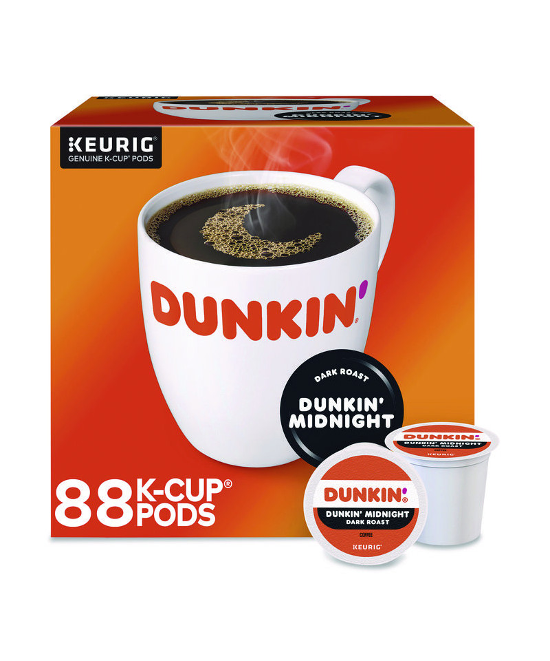 Dunkin'® Midnight coffee is our darkest roast yet! Deep and rich with bittersweet chocolate notes and an intensely dark finish. Dunkin'® Midnight coffee delivers a rich, full-bodied flavor for an intensely dark roast experience. Brew yourself a cup and enjoy the great taste of Dunkin'® at home. This favorite is a delicious delight with flavors that make it the perfect morning cup or a wonderful afternoon treat. It's a success story that started in 1950 as a single donut shop in Quincy, Massachusetts, and now includes over 9,500 shops. Sure, Dunkin'® has been known for its donuts over the years, but it's our coffee that's kept America running. Made from high-quality 100% Arabica beans and a unique, proprietary recipe that people love, it's a consistent, smooth, never bitter, rich-tasting cup of coffee. Brew, Enjoy, Repeat! Every Dunkin'® K-Cup® pod is compatible with any Keurig® K-Cup® pod single-serve coffee maker. Just pop one in and enjoy delicious, fresh-brewed coffee in no time at all. Each K-Cup® pod is filled with the freshest ground coffee and brews a great tasting cup of coffee, every time.