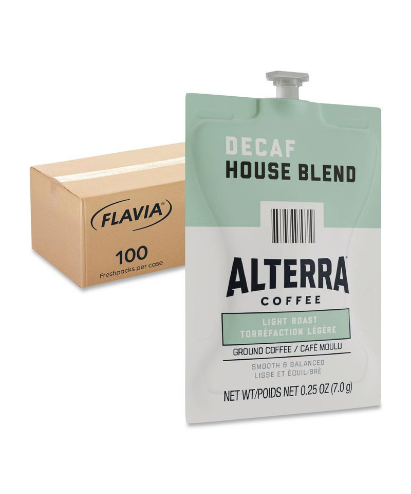 Alterra® House Blend Decaf Light Roast Coffee is a carefully crafted blend of light roasted beans to give a medium bodied, smooth flavor. Our brewing process, where nothing touches the ingredients other than hot water, ensures your drink does not taste like previous brews. Compatible with FLAVIA® single-serve brewers. For single-serve sustainability, innovative pouches are 100 percent recyclable through Terracycle.