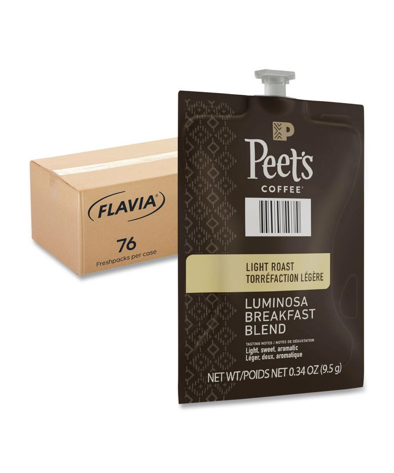 Experience the smooth, mild flavors of Peet's® Colombia Luminosa light roast, expertly blended with Ethiopian coffee for a beautifully balanced cup. The Ethiopian addition imparts a delicately sweet aroma, enhancing the bright, vibrant profile of the Colombian beans, where "luminosa" means "shining" or "bright." Our brewing process ensures that only hot water touches the ingredients, guaranteeing every cup is fresh and free from lingering aftertastes. Fully compatible with all FLAVIA® brewers, this coffee provides the perfect single-serve convenience. Plus, the innovative pouches are 100% recyclable through Terracycle, offering a sustainable solution for your daily coffee ritual. Enjoy a bright, flavorful coffee experience.