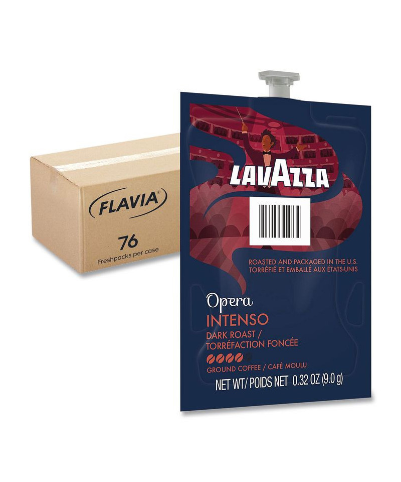 The Lavazza Intenso Dark Roast Coffee features a bold flavor with perfectly balanced smoky and caramelized flavor notes. Our dark roasting process enhances the body while finishing the taste experience with a hint of chocolate flavor notes. This traditional blend of Arabica and Robusta coffees, mainly from South-East Asia and South America, delivers a uniquely Italian coffee aroma. Our brewing process, where nothing touches the ingredients other than hot water, ensures your drink does not taste like previous brews. Compatible with FLAVIA® single-serve brewers. For single-serve sustainability, innovative pouches are 100 percent recyclable through Terracycle.
