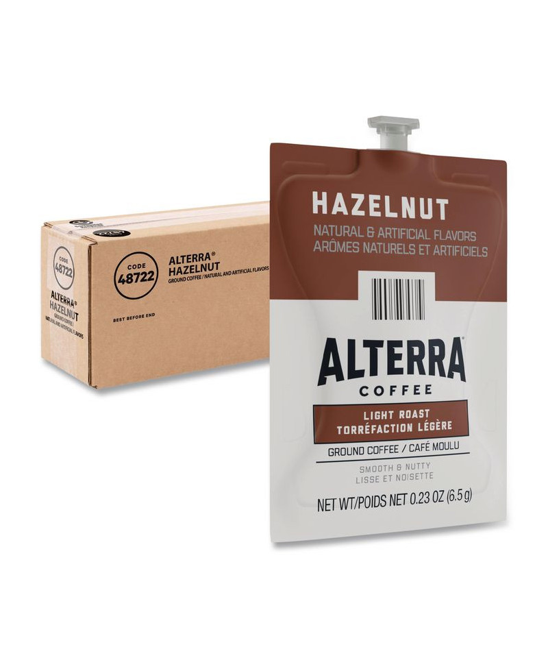 Enjoy a luxurious blend from Alterra® Hazelnut Coffee, a tasty cup of coffee with light roasted beans and the continental flavor of hazelnuts. Our brewing process, where nothing touches the ingredients other than hot water, ensures your drink does not taste like previous brews. Compatible with FLAVIA® single-serve brewers. For single-serve sustainability, innovative pouches are 100 percent recyclable through Terracycle.