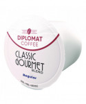 Experience the rich, full-bodied flavor of Diplomat Coffee's Classic Gourmet, now in the ultimate single-serve format—DC Cups. Perfectly crafted for those who appreciate a premium coffee experience, this expertly roasted blend combines the bold flavors of dark chocolate, roasted nuts and a hint of caramel, offering a perfectly balanced cup that's both smooth and indulgent. With each cup, you'll savor the depth and complexity of Classic Gourmet, a blend designed to provide the ideal harmony of richness and smoothness. Whether you prefer it black for its pure, robust flavor or with a splash of milk for a creamy twist, Classic Gourmet DC Cups deliver a consistently satisfying coffee experience every time. Designed for ultimate convenience, these cups are perfect for busy mornings, relaxing afternoons or whenever you crave a top-quality cup without the mess. Simply pop in a pod, press the button, and enjoy a cup of expertly brewed coffee—fresh, aromatic, and rich in flavor. No grinding, no measuring, just coffee perfection in seconds.