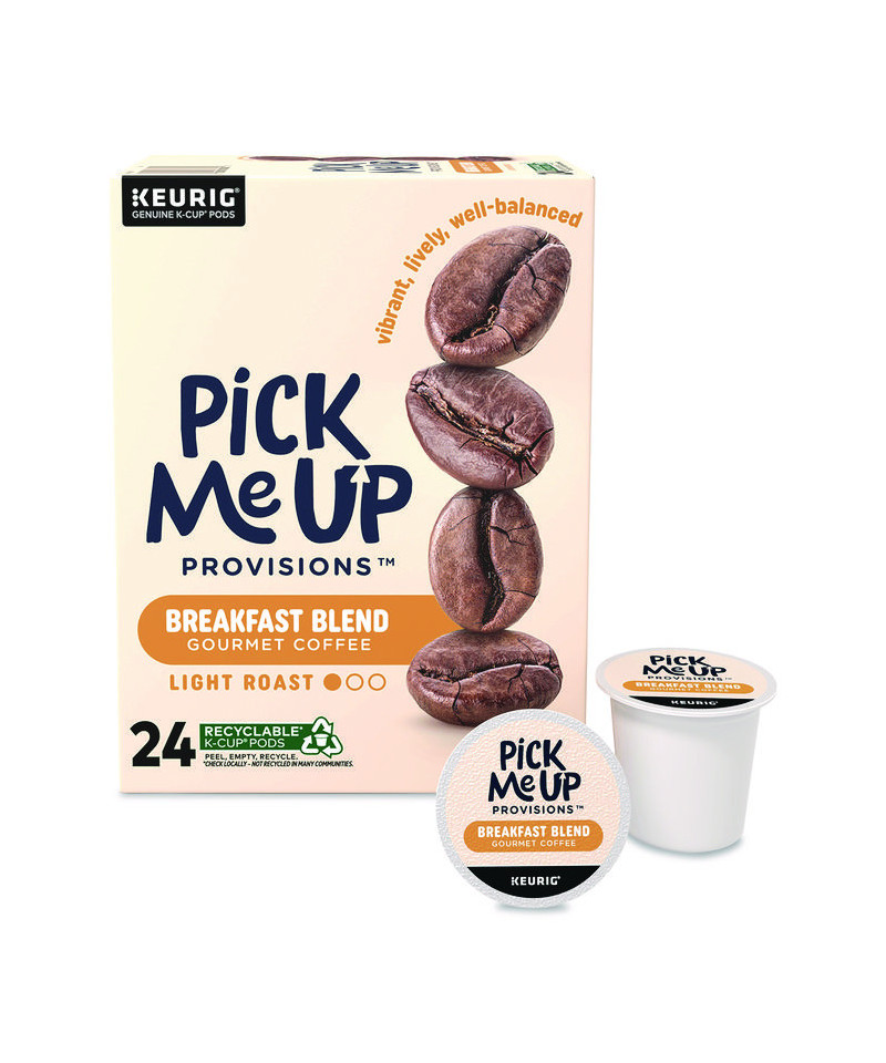 Wake up with our well-balanced and vibrant tasting Pick Me Up Provisions™ Breakfast Blend in convenient K-Cups. Enjoy a vibrant cup of coffee and the energy boost you crave with award-winning coffee. Every K-Cup contains a well-balanced and lively single serving of light roast coffee with no artificial colors or flavors. Grab Pick Me Up Provisions Breakfast Blend for a cup of coffee everyone will love, whether at home or in the office!