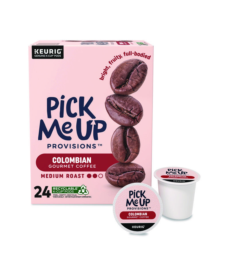 Refuel with a full-bodied cup anytime thanks to the bright and fruity Pick Me Up Provisions™ Colombian. Enjoy a vibrant cup of coffee and the energy boost you crave with award-winning coffee. Every K-Cup contains a full-bodied and fruity single serving of medium roast coffee with no artificial colors or flavors. Grab Pick Me Up Provisions Colombian for a cup of coffee everyone will love, whether at home or in the office!