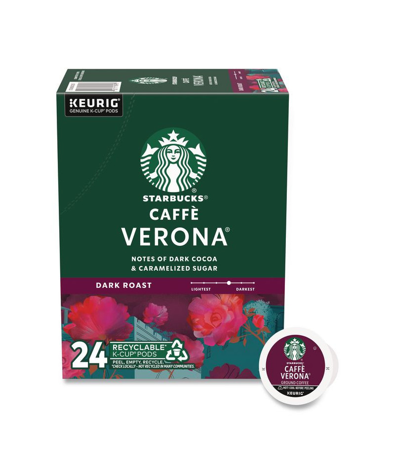 Caffe Verona is a seductive blend of beans from Latin America and Indonesia, with a gentle touch of Italian Roast lending depth, soul and sweetness. A roasty, sweet dark cocoa flavor, makes it an excellent dessert coffee. Pairs well with chocolate, making it a Valentine's day favorite. K-Cups® for use with Keurig® brewing system.