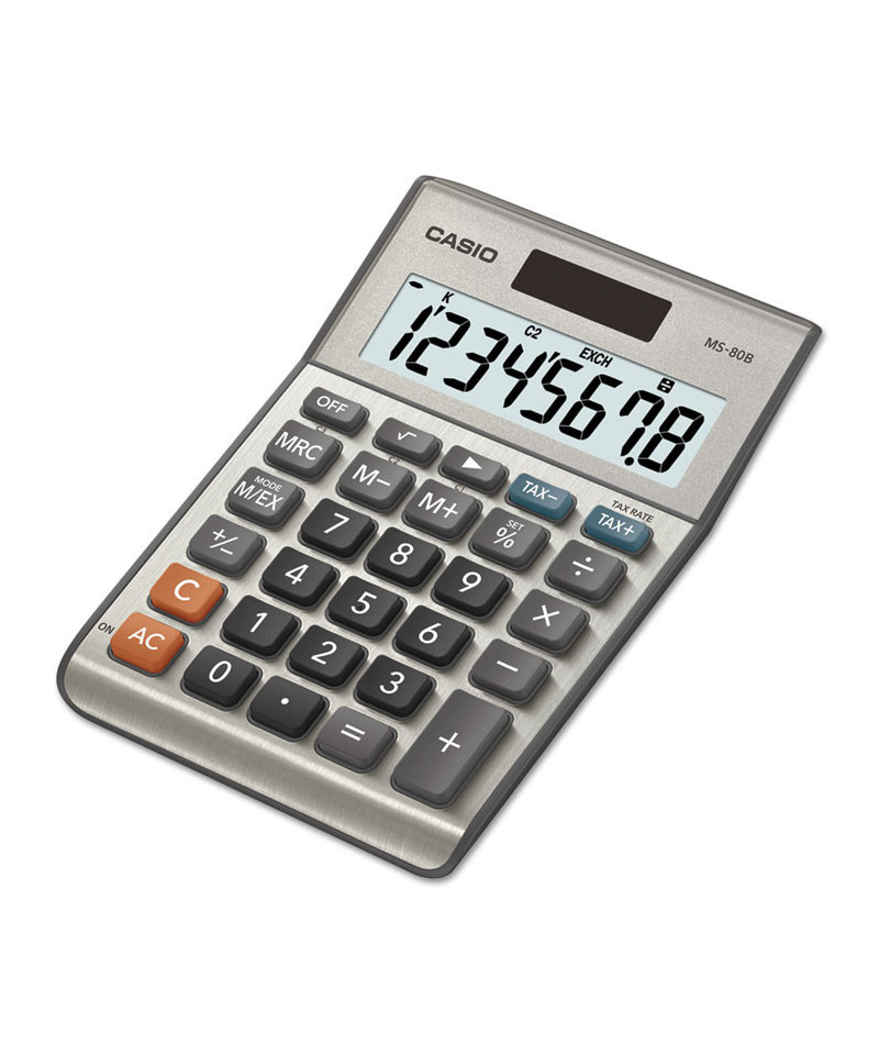 Add to cart SL-300SVCBE Handheld Calculator, 8-Digit LCD, Blue $11.65 The perfect choice for home or travel. Easy-to-read big display. Solar Plus power with battery backup.