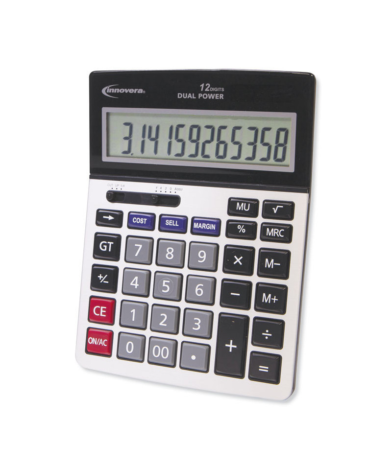 Ideal for balancing budgets, calculating expenses, and totaling up sales, this profit analyzer calculator is a small business and retail essential. Dual power functionality offers energy-saving solar power combined with battery power to work in any lighting. The 12-digit LCD display handles large calculations and equations. Easily read the correct answer, thanks to the 0.74" (19mm) digit size. Angled display prevents overhead glare and eyestrain. Markup, Cost/Sell/Margin, and Grand Total keys, along with decimal slide switch, provide added functionality for business needs.