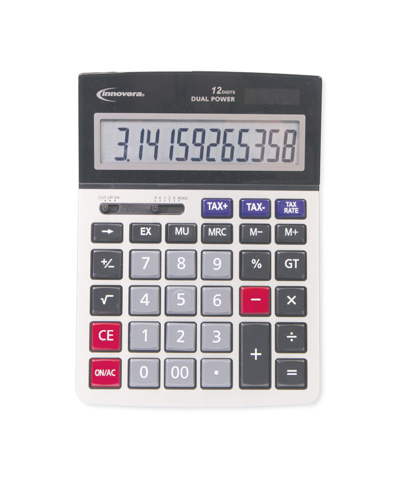 Ideal for everyday calculations and small business tasks, this easy-to-read calculator features an extra-large 0.78" (20mm) digit size. The angled display prevents overhead glare and eyestrain. Large, commercial-quality keys make it simple to enter numbers correctly the first time. The 12-digit display handles longer equations. Dual solar/battery power ensures the calculator is ready to use in any lighting conditions. Tax Calculation, Markup, and Grand Total keys, along with decimal slide switch, provide added functionality for business needs.