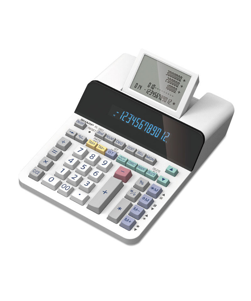 Twelve-digit paperless printing calculator. Features Check and Correct, cost/sell/margin keys, automatic tax keys, grand total key, and 4-key memory. No ink, no paper and no noisy printer.