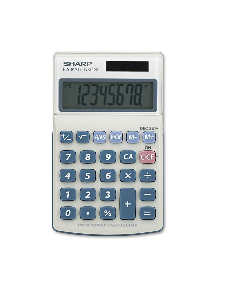 Add to cart SL-300SVCBE Handheld Calculator, 8-Digit LCD, Blue $11.65 The perfect choice for home or travel. Easy-to-read big display. Solar Plus power with battery backup.