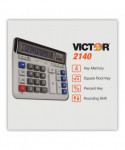 The Victor® 2140 12-digit calculator is perfect for desktop use either at home or in the office. Features an extra large LCD angled display. Other functions include: PC touch keys, selectable decimal switch, rounding slide switch, mark up key, square root key, grand total key, percent key, 4-key independent memory, change sign key, backspace key, automatic power down, and hybrid power (solar/battery backup).