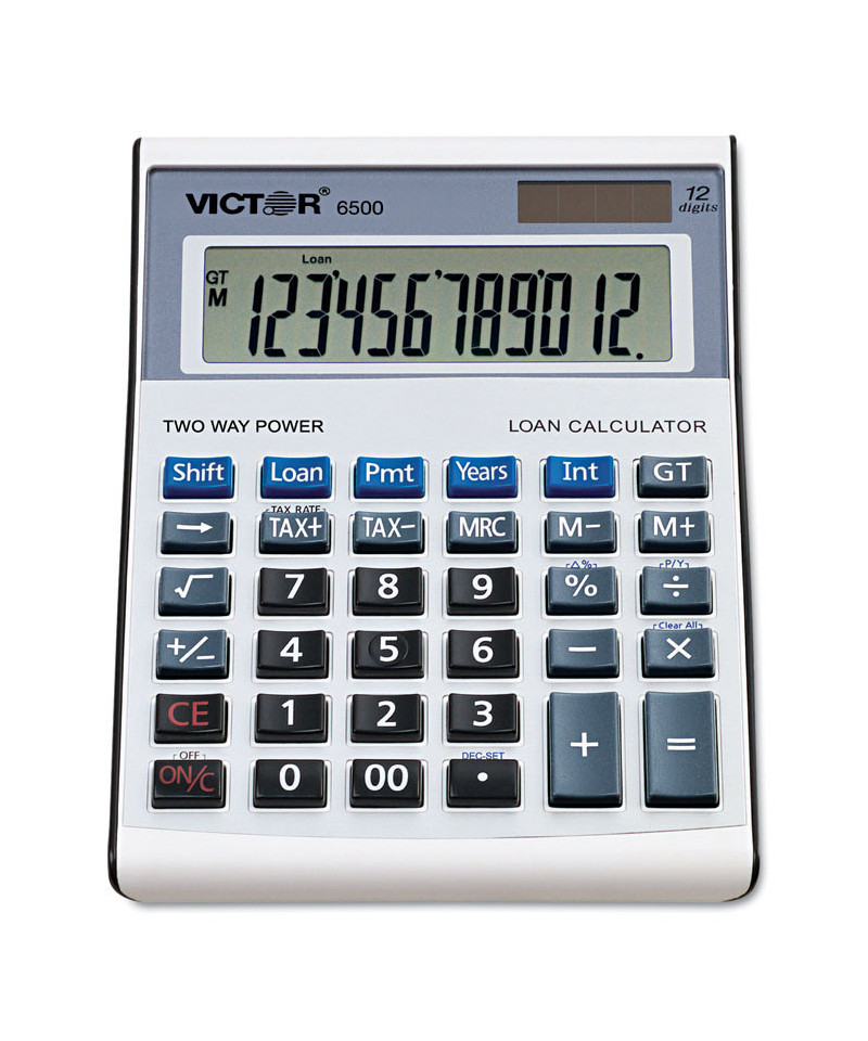 12-digit calculator is perfect for desktop use either at home or in the office. Features an extra large LCD angled display. The smooth touch keyboard, huge 21mm display, and brushed metal faceplate, make it the optimal calculator for your desk. The loan wizard helps you effortlessly answer any loan question (simply input any three loan variable to compute the fourth, you also have the option to change payment periods per year). Other functions include: automatic tax keys, selectable decimal, square root key, grand total key, percent key, 3-key independent memory, change sign key, backspace key, delta percent, automatic power down, and hybrid power (solar/battery backup).