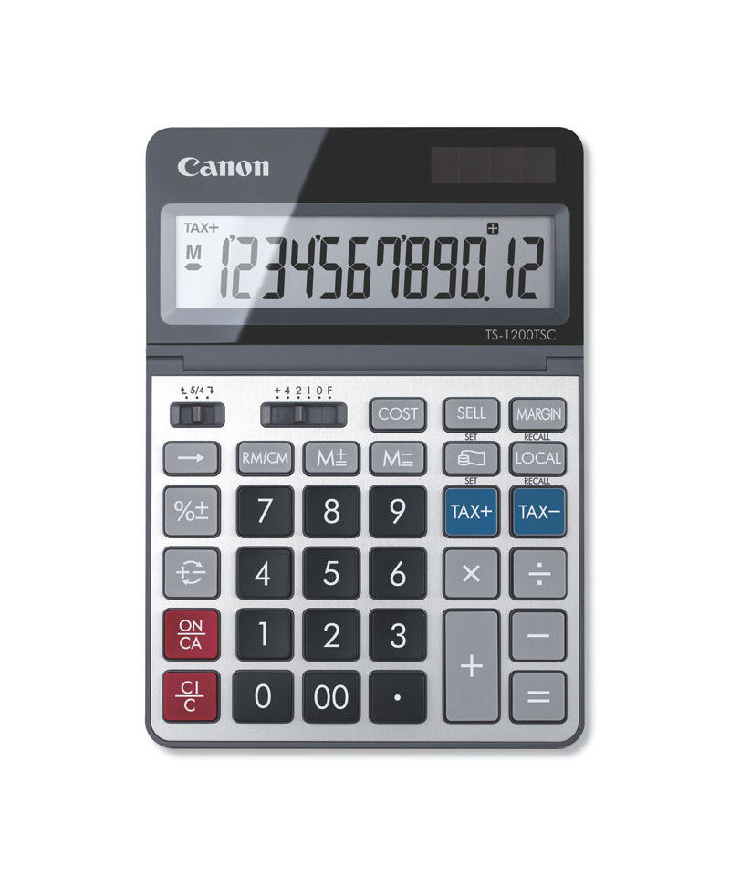 Perfect for your school or home office, the TS-1200TSC desktop calculator features a 12-digit adjustable LCD display and a variety of commands, such as tax functions and currency conversion.