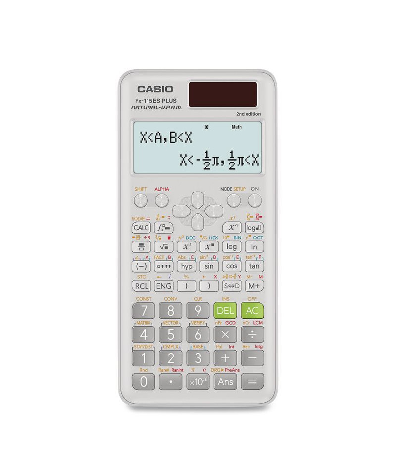 Casio FX-115ESPLS2-S 2nd Edition Scientific Calculator with slide on hard case and sleek new design. With the Natural Textbook Display, in addition to advance Statistics, Matrix, and Conversion functionality, is a perfect choice for high school and college students. Recommended for students taking General Math, Pre-Algebra, Algebra I and II, Geometry, Trigonometry, Statistics, Calculus, Chemistry, Engineering.