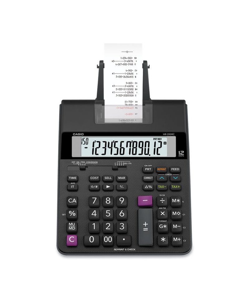 This compact printing calculator prints 2.4 lines per second with two-color printing and Cost/Sell/Margin functionality. Check and correct up to 150 steps and print after correction. Clock and calendar function prints time and date.