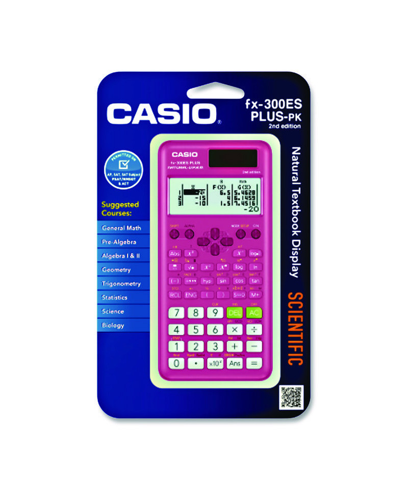 FX-300ES Plus 2nd Edition Scientific Calculator, 16-Digit LCD, Pink