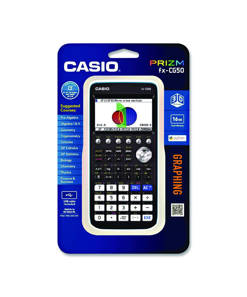 With the advanced features of a next-generation graphing calculator, the FX-CG50 PRIZM™ will support students and educators through middle school, high school and into college. With Natural Textbook Display and an intuitive icon-based menu, students will find this calculator incredibly easy to use. Its brand-new 3D Graph Drawing and improved catalog function allow for greater engagement and real-life application in the mathematics classroom.