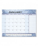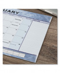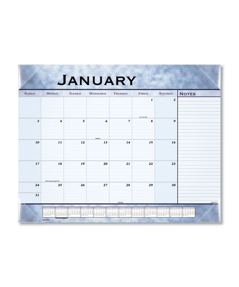 Stylish desk pad helps protect your desk and features an upscale, slate blue design on each page. Durable backboard provides a sturdy writing surface. One month per page with unruled blocks, lined notes space and shaded weekends. Full-year calendar reference; federal holidays highlighted. Bonus pages: current- and future-year reference calendars and "Dates to Remember" page. Printed on high-quality with superior ink bleed resistance.