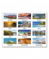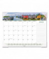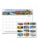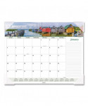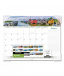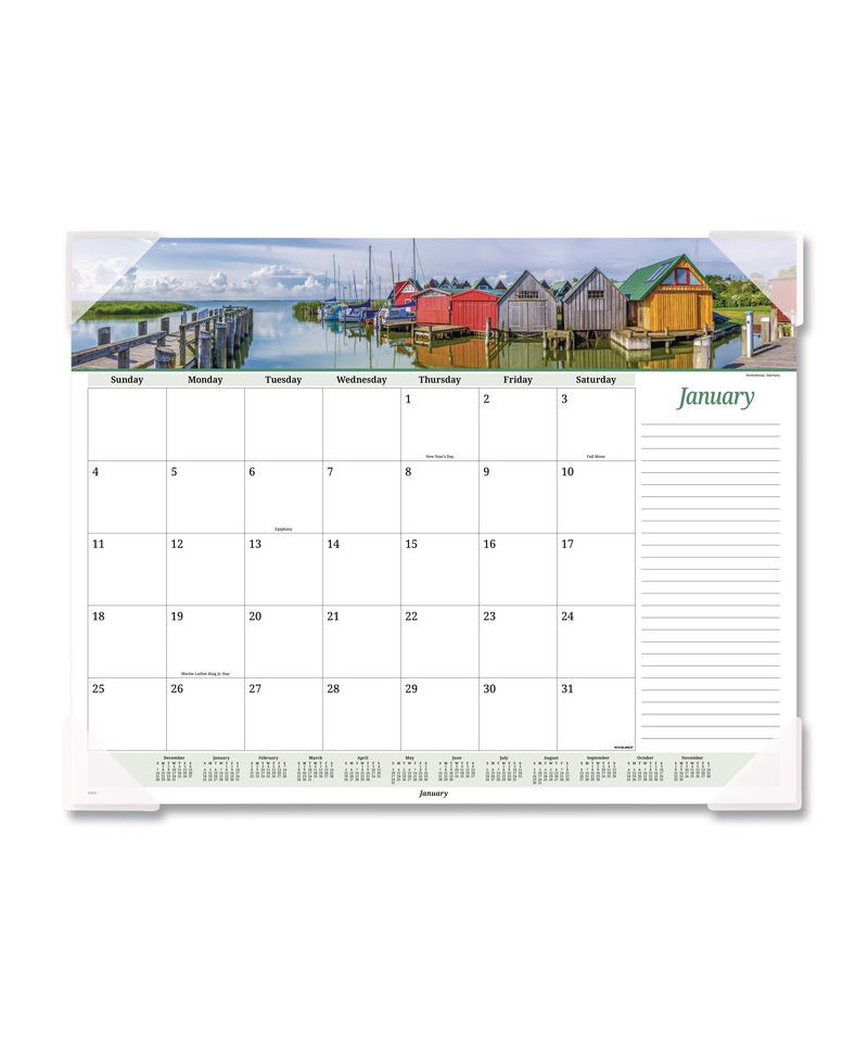 Seascape desk pad transports you to the beach while you work. Durable backboard provides a sturdy writing surface. Features full-color, wide-view photos. One month per page with unruled blocks and lined notes space. Full-year calendar reference; federal holidays highlighted. Includes current- and future-year reference calendars and "Dates to Remember" bonus pages. Four clear poly corners keep pages flat. Printed on high-quality paper with superior ink bleed resistance.