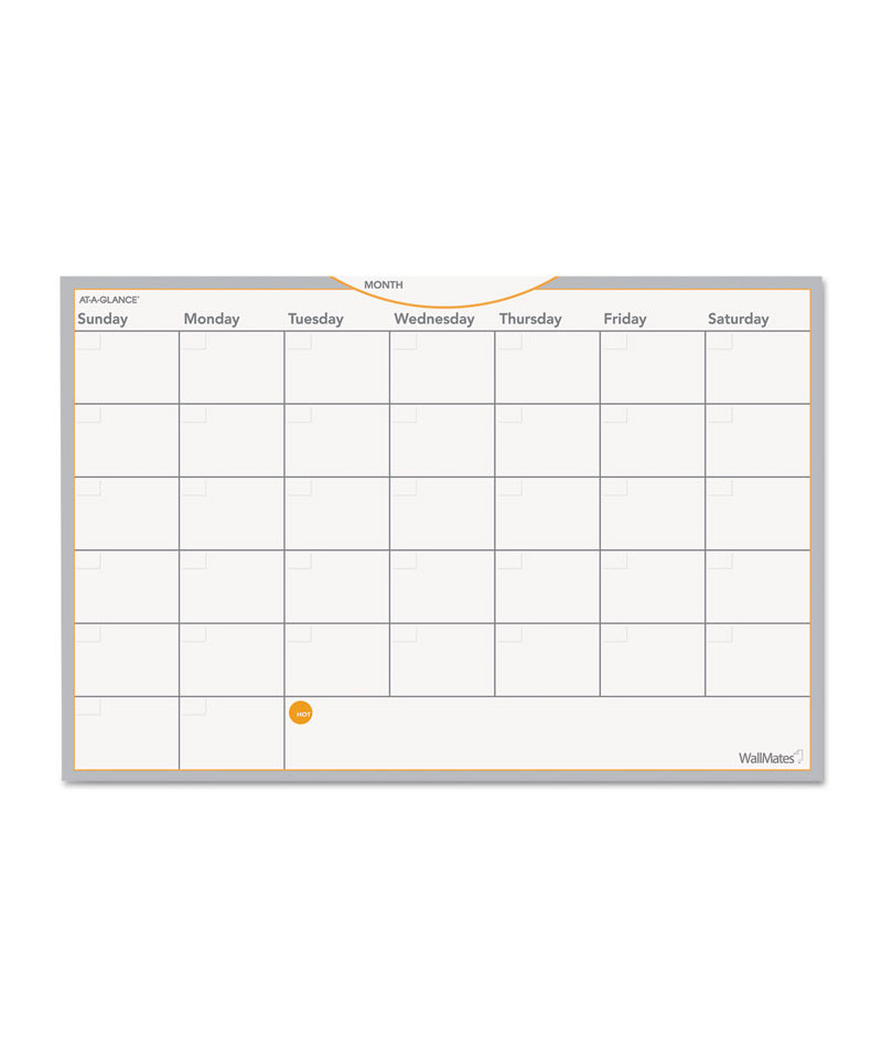 WallMates Self-Adhesive Dry Erase Monthly Planning Surfaces, 18 x 12, White/Gray/Orange Sheets, Undated