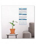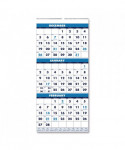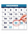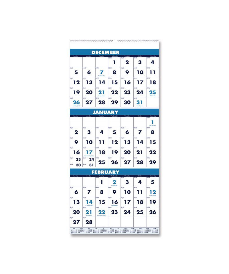 See three months at a time. Wall calendar details the prior, present and following month on each page. Large date numerals with holidays highlighted. Strong wire-binding firmly keeps the pages together and in place. Features a full, 12-month reference calendar for long-term planning. Sturdy wire hanger makes it easy to hang the calendar on the wall. Made entirely of recycled materials.